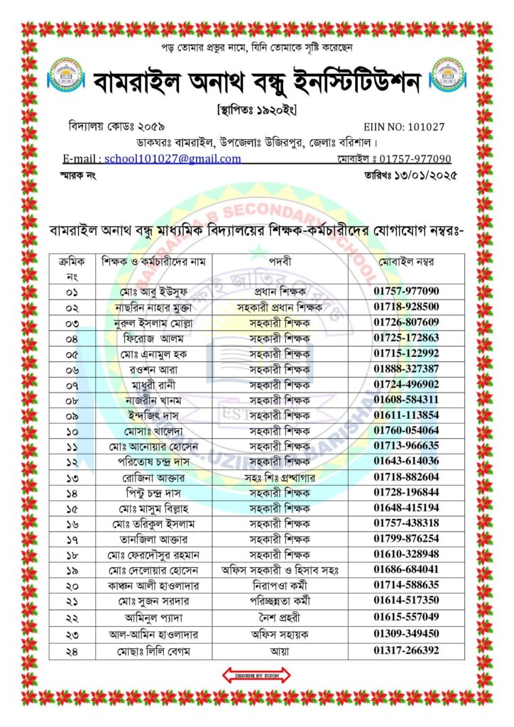 শিক্ষক–কর্মচারীর তথ্য